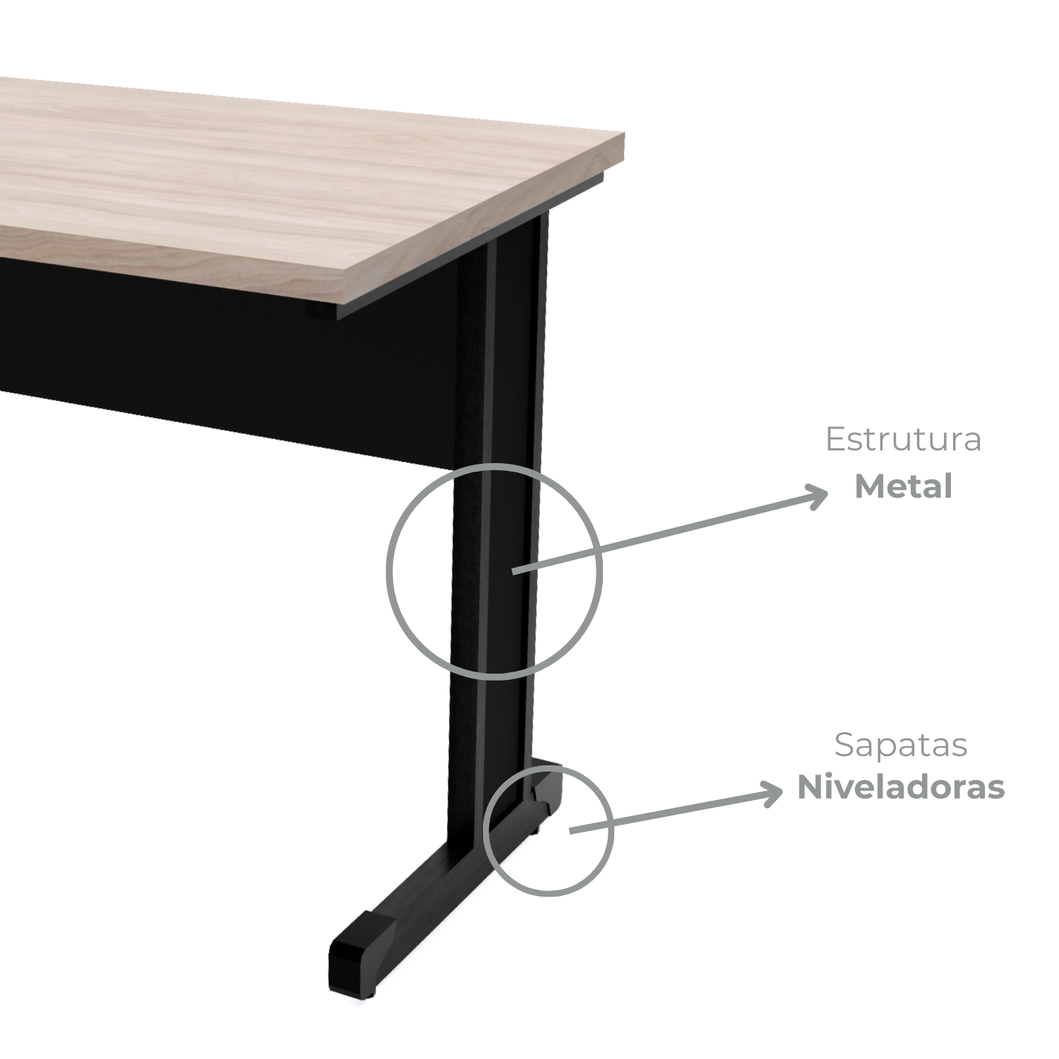 Esta mesa com pés metálicos: uma opção funcional e durável. Os pés com estrutura dupla e pintura eletrostática garantem durabilidade, proteção e um acabamento moderno, enquanto as sapatas niveladoras proporcionam estabilidade em qualquer piso. Ideal para escritórios ou home office, a escolha certa para quem quer uma linha mais econômica.
